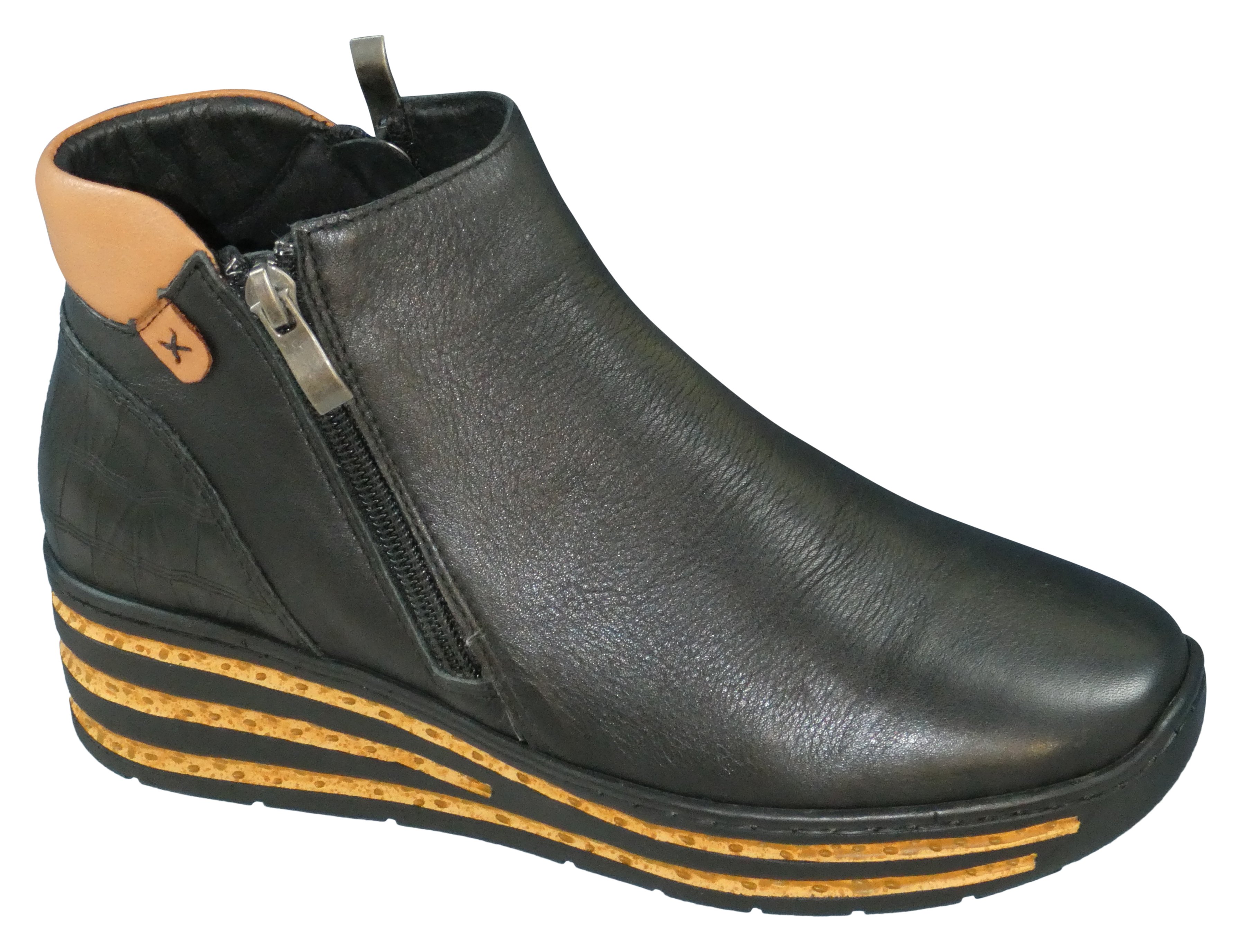 BLACK LEATHER/TAN TRIM