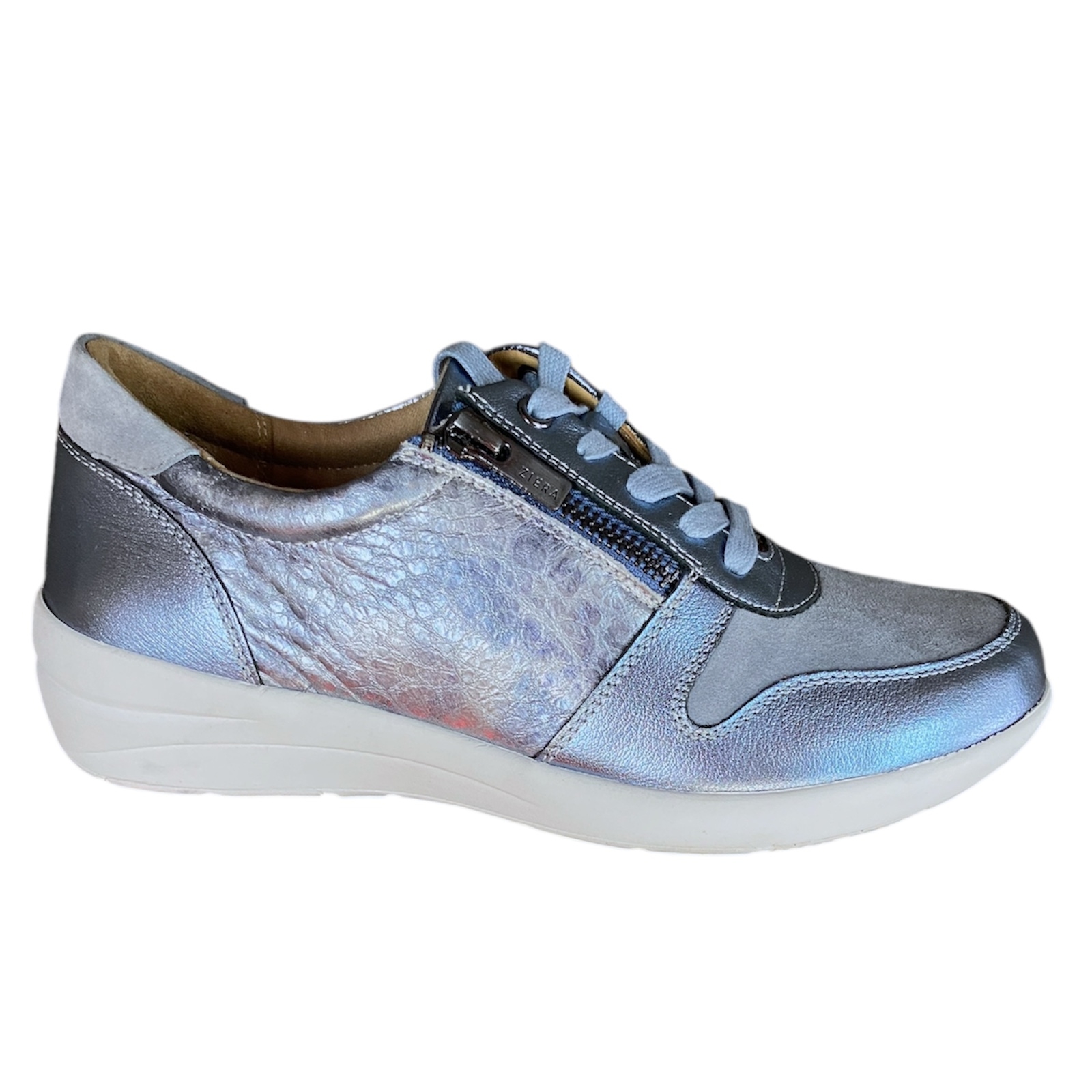 BLUE MIX METALLIC LEATHER. WIDE FITTING